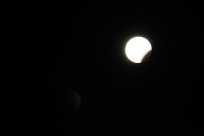 Bei der "kürzlichen" Mondfinsternis hatte ich versucht, den Mond aufzunehmen mit dem 300m Tele. Das ärgerliche war nur, daß bei allen Aufnahmen immer ein zweier blass bläulicher Mond zu sehen war. Das Gleiche hatte ich vorher schon einmal beoachtet, als ich die Kamera neu hatte, dachte, das läge nur an mir.