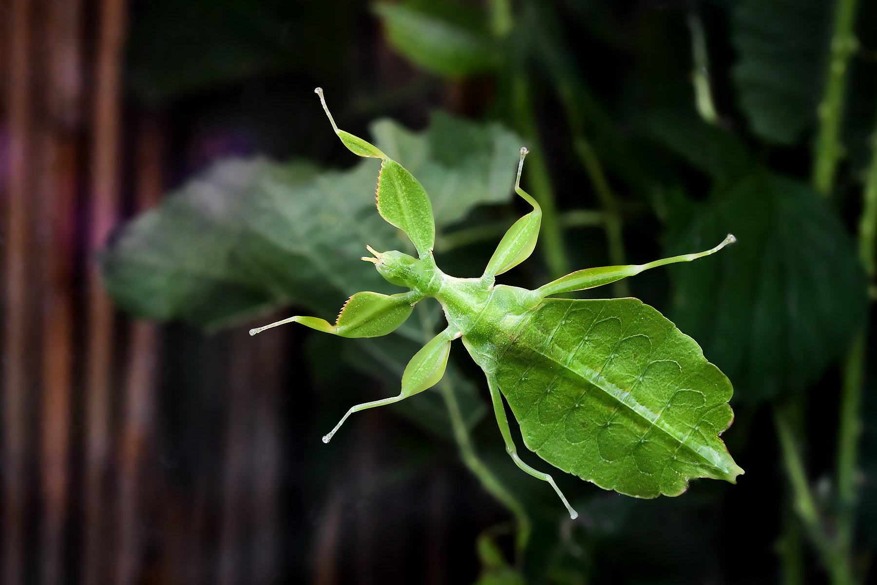 Nein, es ist kein Blatt, es ist ein Insekt und nennt sich: wandelndes Blatt (Phyllium sepc.)