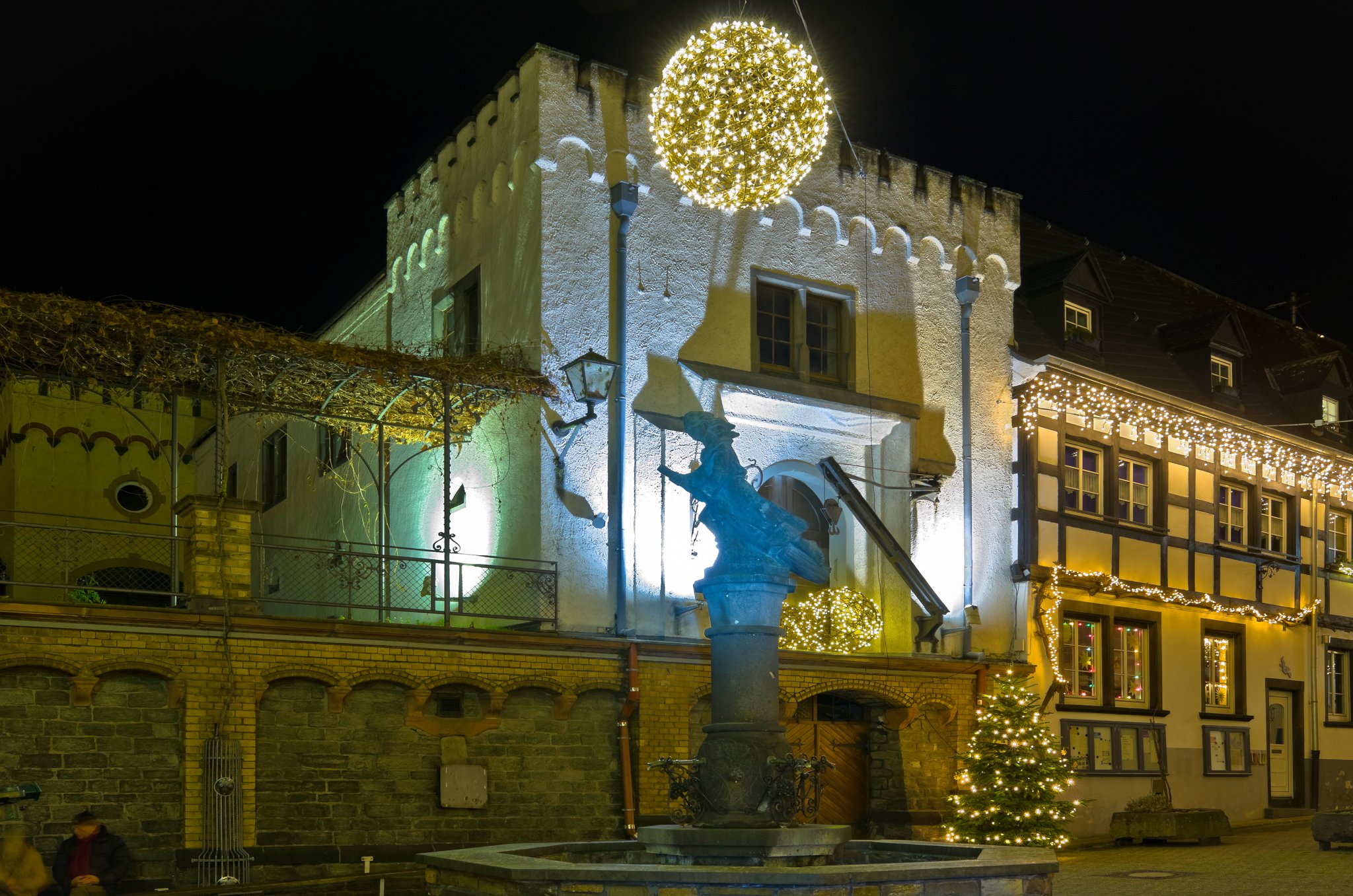 Winningen hat seinen Ortskern trotz der Pandemie recht weihnachtlich geschmückt. Die Menschenleere kommt natürlich den "Lichtjägern" zugute...