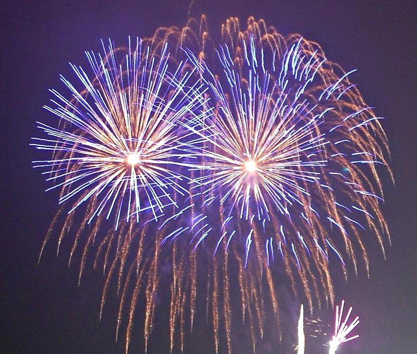 ich noch einmal:-) ich habe mir Gedanken gemacht wie man die Rauchschwaden im Foto eliminieren könnte, sodass das Feuerwerk mit den schönen Farben besser hervorsticht und der Hintergrund schwarz wird. Das geht in Photoshop mit den Einstellungsebenen Multiplizieren und weiches Licht ganz gut.